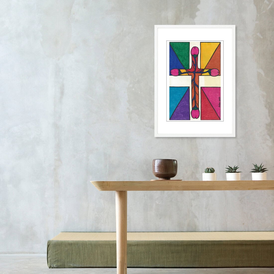 Holy Cock is a bold, veiny middle finger to genital shame—served in color, joy and with a wink to Christianity. It’s the cross you never saw coming: four thick, pink heads stretching outward in a full frontal confrontation with repression. A psychedelic fuck-you to purity culture. A celebration of cock as power, cock as play and cock as pure, raw nature. This piece doesn’t ask for permission. It hangs on your wall like a provocation, a dare, a statement of what is. For the brave, the proudly pervy, and those who know that sometimes the most honest thing you can do is to let it all be. Whether you see it as protest, pleasure, or just a really great conversation starter—it’s hard to look away. And that’s the point. Size: A3.Additional information