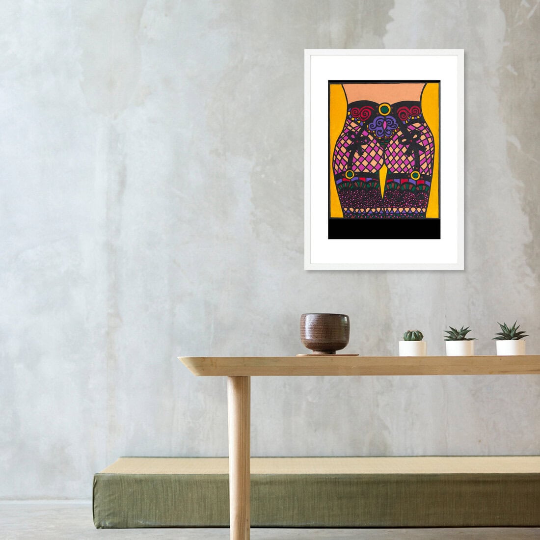 Meet Ms Kinky Ass: a celebration of sexual confidence, lush adornment and the unashamed joy of being looked at. Draped in decadent pink fishnets and black leather bows, her juicy curves command instant devotion. Ms Kinky Ass doesn't just walk into a room—she owns it. This artwork is a visual ode to the female ass in full sovereignty–alive, up for adventure and outrageously sexy. Every detail–from the gold rings and intricate fishnets to those playful black leather bows—whispers the language of soft domination and erotic power. Ms Kinky Ass isn’t here to please you. She’s here to please herself—and if you're lucky, you get to watch. Size: A3.Additional information